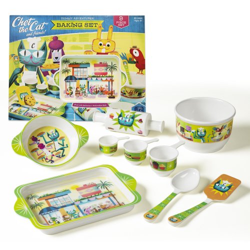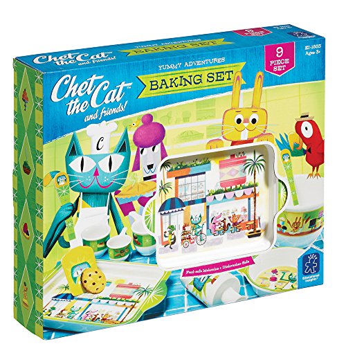 Meet Chet the Cat and Friends! Chet inspires children to join his friends in the kitchen and at the table-no reservations required! Each melamine set is food-grade, dishwasher-safe and long-lasting. Chet invites boys and girls to step into the world of make believe as they cook and eat with Parfait Poodle, Ready Rabbit and Marv the Parrot.