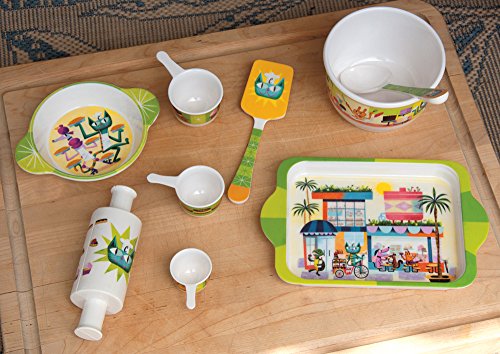 1 Rolling pin, 1 mixing bowl (4.8" x 3"), 1 pie pan (6" x 1"), 3 measuring cups, mixing spoon (6.5"), spatula (6.5") and cookie sheet (8.5" x 5.5")