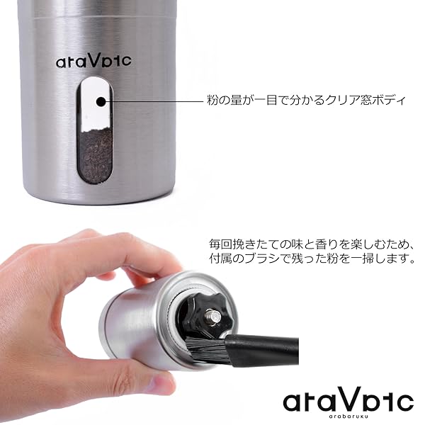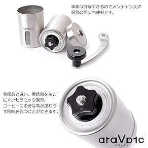 araVarc 손 켜 커피 분쇄기는 세라믹 절구이므로 금속 냄새가없고, 녹슬지 않습니다.