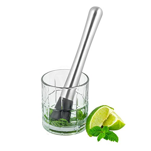 - PREMIUM QUALITY: Made of strong and beautiful stainless steel unlike traditional muddlers that are made of lacquered wood that can pollute your drink over time and leave a disgusting after-taste.