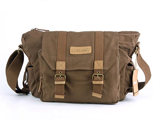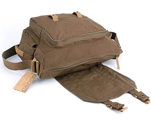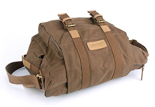 Modovo Canvas Leisure DSLR SLR Camera Bag Messenger Bag Adjustable Bottom Straps for Tripod Removable Inside Pad 15"x 7"x 11" ( No Tripod Included ), Brown