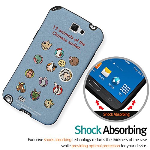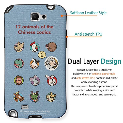 Ecoskin Samsung Galaxy Note 2 Case [Buckler Series 02] Cute Animals Design Italian Premium Saffiano Leather style Shock Absorbent TPU Case with 9H Hardness Screen Protector N7100 (Sheep) [Retail Packaging] [Made in Korea]