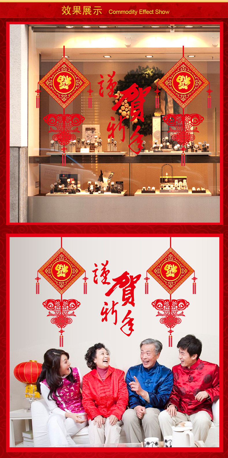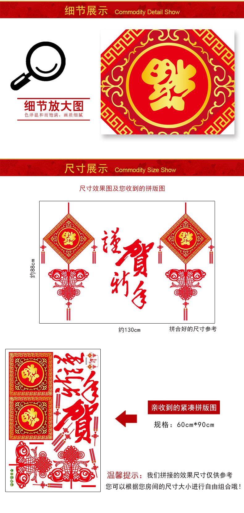 新年元旦春节墙贴画 福字 客厅墙壁贴纸装饰品节日喜庆谨贺新年