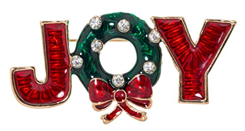 CHRISTMAS XMAS JOY WREATH BROOCH PIN 2.25" WITH CRYSTAL ACCENTS