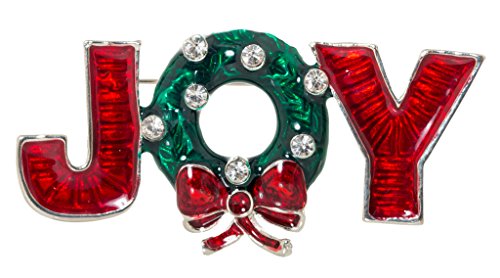 Christmas Xmas Joy Wreath Brooch Pin 2.25" with Crystal Accents (Silver Tone)