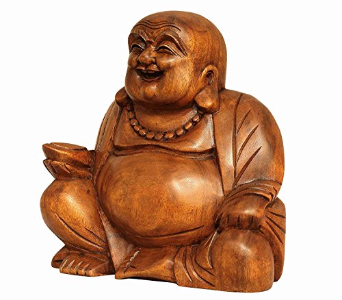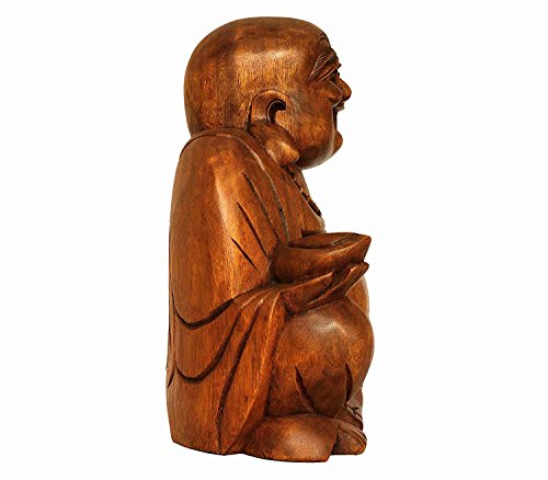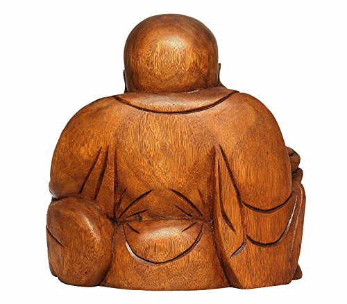 G6 COLLECTION 8" Wooden Laughing Happy Buddha Handmade Art Statue Handcrafted Sculpture Home Decor (Small)