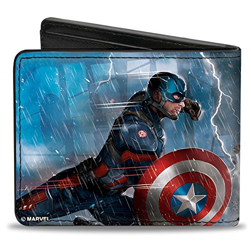 Studio : Buckle-Down Publisher : Buckle-Down Binding : Apparel Product Description This awesome men's bi-fold wallet is made from premium vegan leather. It measures 4.0x3.5x0.5 inches, and features the standard billfold, 5 card slots, and windowed id holder. The logos are applied using advanced printing technologies, so the wallet will still look good after years of hard use. This product is officially licensed by captain America and made in USA by Buckle-Down Inc. 0