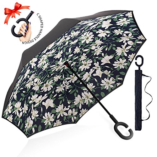 -. Title : ZOMAKE Double Layer Inverted Umbrella Cars Reverse Umbrella, UV Protection Windproof Large Straight Umbrella for Car Rain Outdoor With C-Shaped Handle