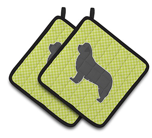 Caroline's Treasures Newfoundland Checkerboard green Pair of Pot Holders BB3864PTHD, 7.5HX7.5W, Multicolor