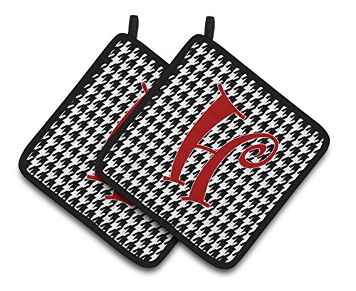 Caroline's Treasures Monogram Initial H Houndstooth black Pair of Pot Holders CJ1035-HPTHD, 7.5HX7.5W, Multicolor