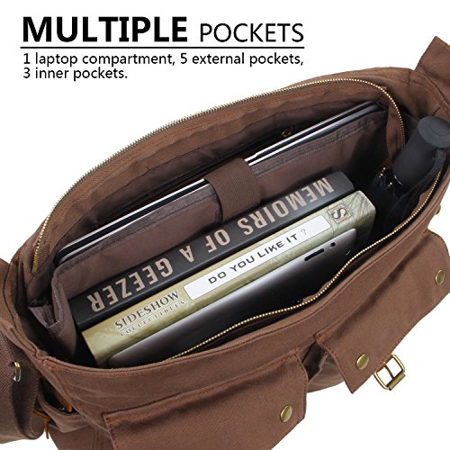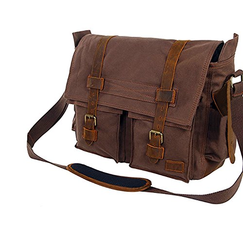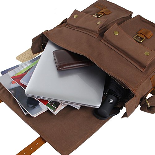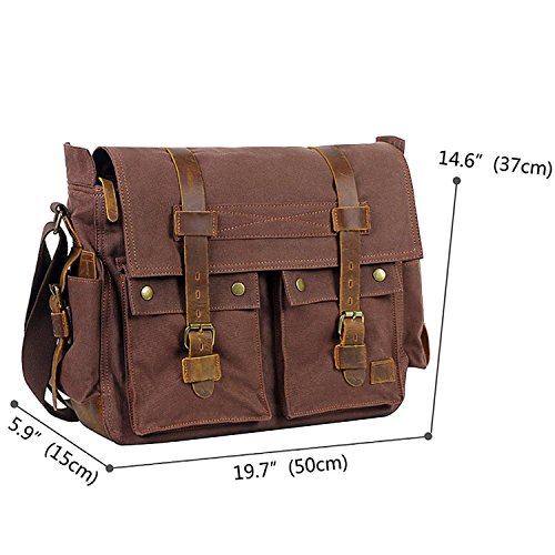 -. Feature : 【Premium Material】►Easy-going style Artandcraft vintage canvas military bag is constructed of high-quality canvas, genuine cowhide leather, brass hardware buckle and YKK zippers to ensure long-lasting durability. / 【Ergonomic Wide Shoulder Pad】►Wear-resisting shoulder strap is wide and thick, equipped with a movable mesh shoulder pad with breathable comfortable material to alleviate shoulder fatigue. Freely adjust shoulder strap per what you need for comfort. / 【Shockproof Laptop Sleeve】►Customized men's laptop bag with thickened anti-shock laptop compartment can fit most 16.5" laptops with velcro to secure laptops efficiently. The size of this spacious satchel is 17.5 x 5 x 13 inches. The inner laptop compartment is up to 16.5 x 2 x 11.5 inches. Front Pockets are 5.9 x 7.1 x 0.79 inches. / 【Handy Secure Pockets】►Artandcraft canvas shoulder bag is a clever design with full-size rear anti-theft zipper pockets for your use with valuables like cellphone/iPad/wallet. Two side pockets with genuine leather flap and buckles to secure your gadgets efficiently. / 【Organized Multiple Pockets】►External access to 2 front pockets with buckles, 2 side pockets with magnetic snaps, 1 rear zipper pocket with leather clasp. Seal the flap-over with two durable pin buckles. ►Internal access to 1 main zipper compartment, 1 main thick foam padded laptop compartment with velcro closure, 2 pockets for pens, 2 phone pockets,1 zippered pocket.