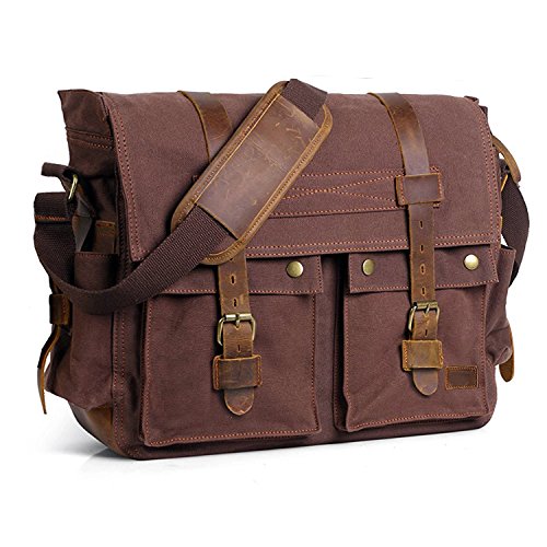 -. Title : Artandcraft 17 Inch Men's Messenger Bag Vintage Canvas Leather Satchel bag Military Shoulder Laptop Bags Bookbag Working Bag for Men and Women