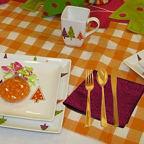 Christmas 200 Piece Gold Cutlery Set For 50 Guest, Elegant and Disposable Gold-Look Flatware. Pack Includes 200 Pieces of Gold Cutlery 100 Gold Forks, 50 Gold Spoons, and 50 Gold Knives.
