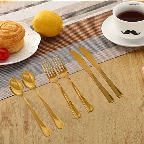MADE FROM HIGH QUALITY GOLD PLASTIC WITH ENDLESS SHINE. Your guest will not see a difference between real gold china and these gold 24K look cutlery when served with these elegant flatware. Could be washed and reused.