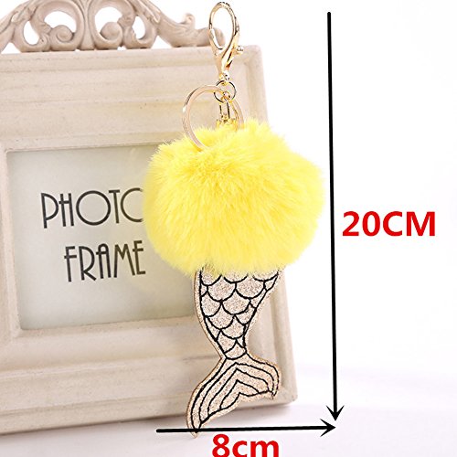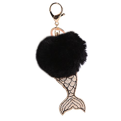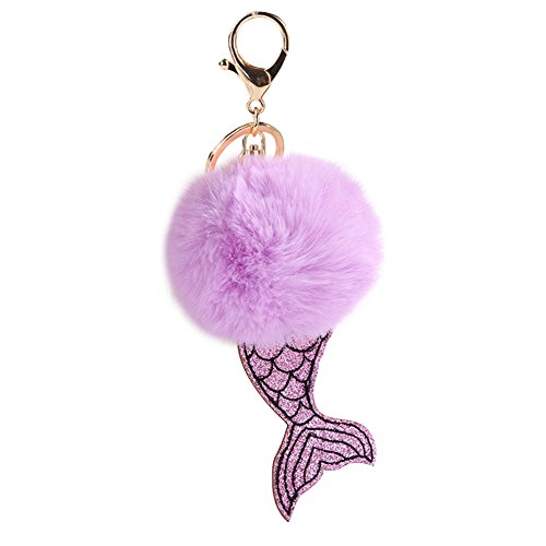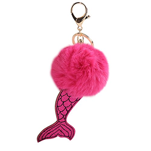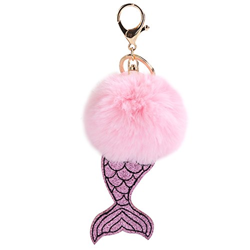 ACTLATI Elegant Mermaid Keyfob Decor Cartoon Animal Handbag Keyring Fluffy Ball Keychain