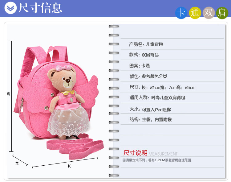 幼儿园防走失背包卡通包包1-3岁儿童书包女孩包可爱女宝宝双肩包