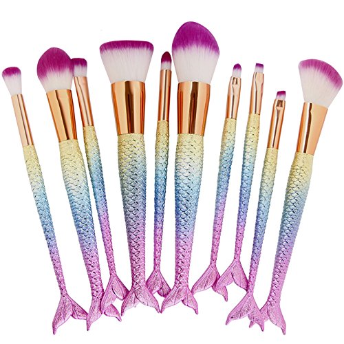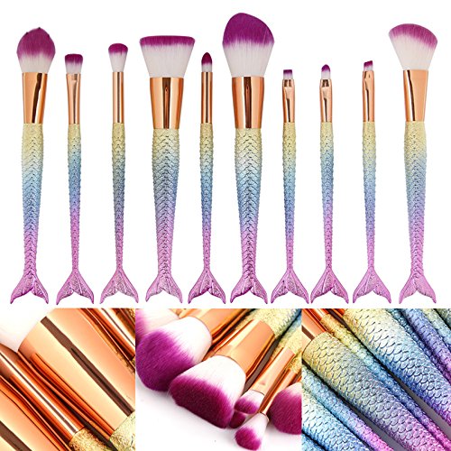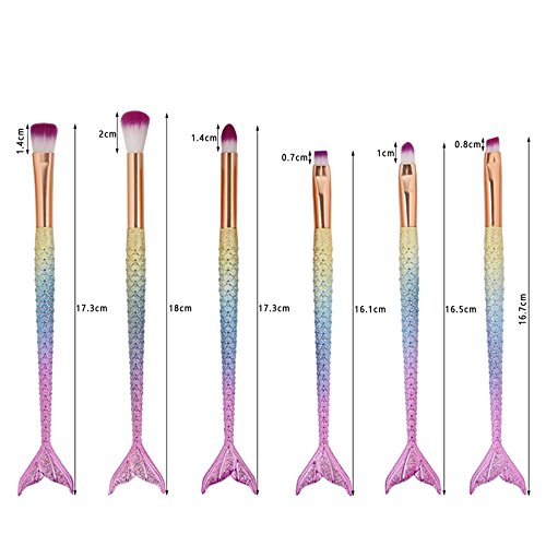 - Mermaid Nylon Hair Makeup Brush Set, for Foundation, Eyeshadow, Blush, Cream, Concealer, Loose Powder.