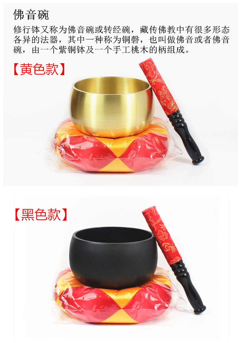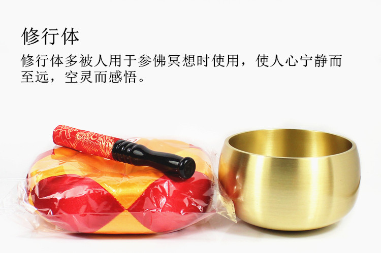 | 本产品采用进口铜材料制造而成,因产品造型相似日本大 磬,故称为日式铜磬,在演奏时起到休止之节。铜磬音色 清脆、明亮、悦耳、悠扬,犹如铜钟之声,延续音长、穿 透性强,是修法的必备品。感恩! |