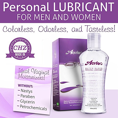 Studio : ACVIOO Publisher : ACVIOO Binding : Health and Beauty Product Description Description Natural?Personal?Lubricant (Water?Based?Personal?Lube) Ingredients:? Glycerin?Water?(Aqua?),?Cellulose?Gum,?Methylparaben,?Propylparaben Capacity: 240ML (8 Oz) Why you need the Personal?Lubricant ? For penile and/or vaginal application, intended to lubricate and moisturize, to enhance the ease and comfort of intimate sexual activity and supplement the body's natural lubrication. This product is compatible with natural rubber latex, polyurethane, and polyisoprene condoms. How?to?use?the?Natural?Lube? Apply?a?small?amount?to?genital?areas.?Reapply?as?needed?or?desired. For?Your?Attentions: