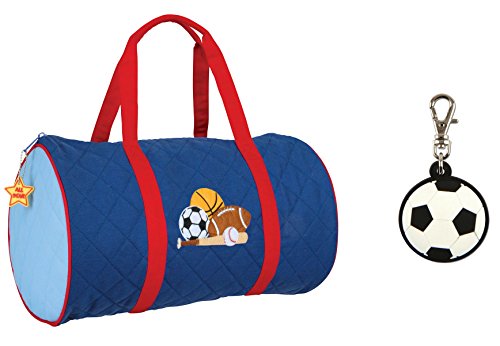 Super adorable! This vibrant themed set is sure to delight your little one. This quilted duffle bag is a great way to keep your child organized for any trip. It measures approximately 9" X 15". Includes an additional matching zipper-pull to make the set complete. Bag is 100% cotton and machine washable.Feature