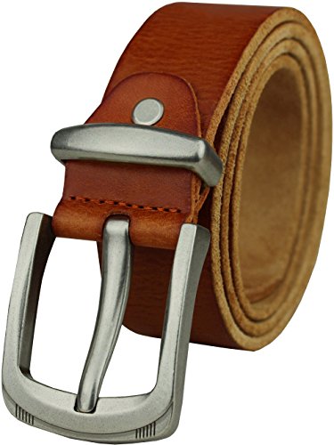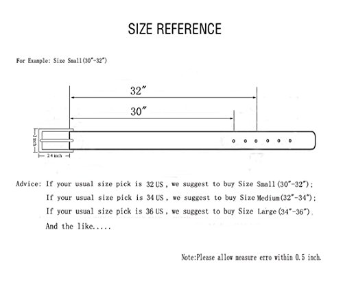 -. Feature : Genuine Leather - 1.5 in wide, 7 Holes for perfect fit, order the size as your normal waist size. / All the Time with Appreciation - New fashion casual vintage style and durable strong leather meet your need in different occasions; / Removable Buckle -To remove the belt, just press the small metal lever on the bottom of the buckle, and the belt slides out of the buckle, which allows you to cut leather down to a smaller size if necessary; / As a Gift Every Time - A high quality leather belt is a best choice for the one u love.