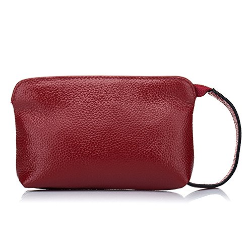 -. Feature : Small and Light: (W)6.9 x (H)4.4 x (D)1.4 inches; Only 3 ounces weight / Structures: 1 full size zip compartments, 1 secret zip pocket inside. / The leather hand strap/ wristlet is stitched, comfortable and durable / Premium quality: Genuine cowhide leather, smooth and soft; Heavy duty metal zippers, smooth and durable. / A small clutch purse with cute look, holds basic things like smartphone, moneys and keys, perfect for night out or other light style.