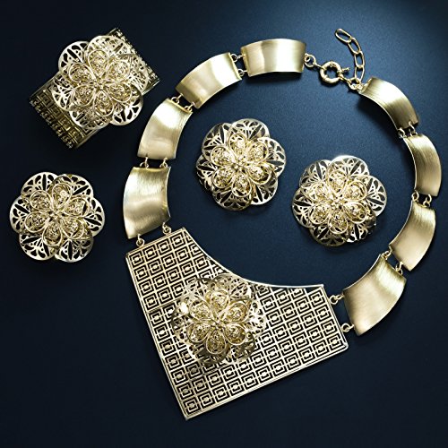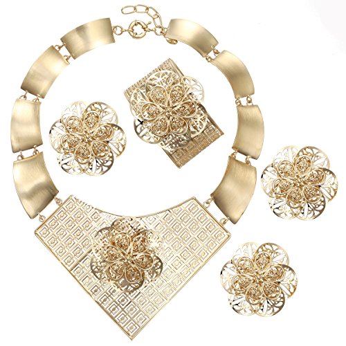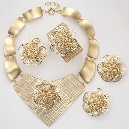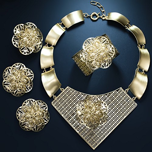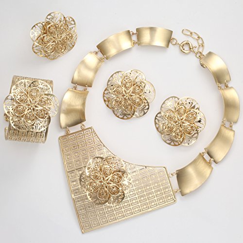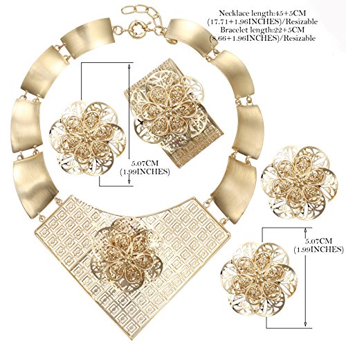 Africa Big Flower Gold Plated Jewelry Set of Necklace Earrings Bracelet Ring