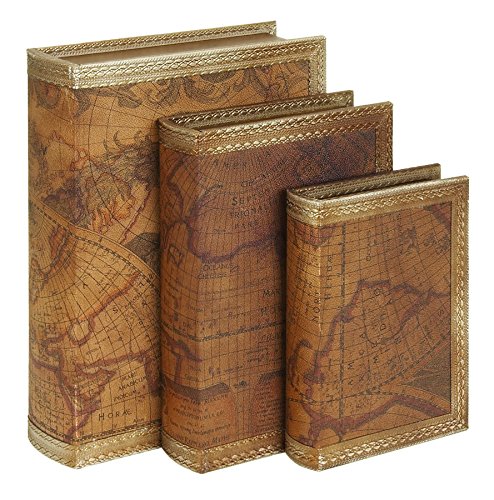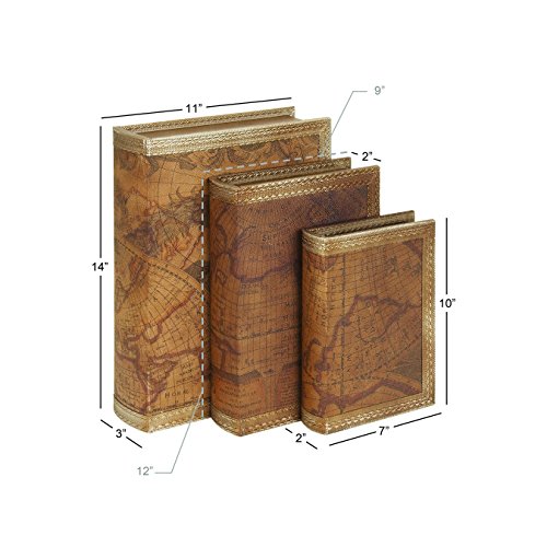 -. Title : Deco 79 MyHabit Worldmap Faux Leather Book Boxes, Set of 3