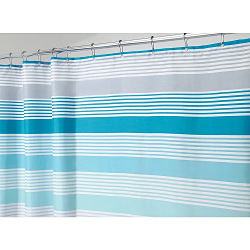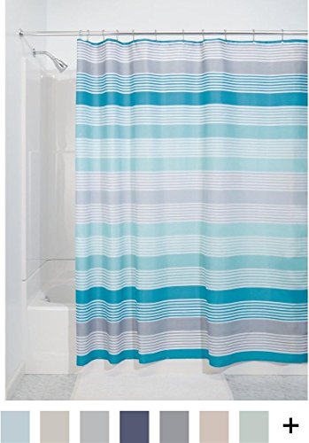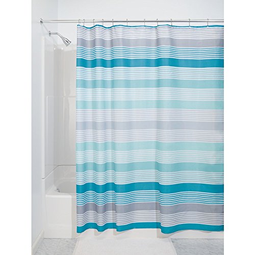 InterDesign Hampton Stripe Fabric Shower Curtain - 72" x 72", Teal/Gray
