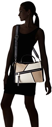 Product DescriptionTop zipper top handle satchel with color block details and removable shoulder strap, interior organization and back exterior slip pocket0