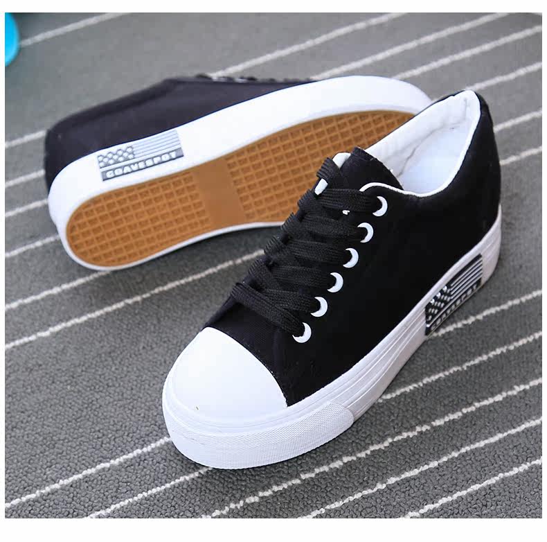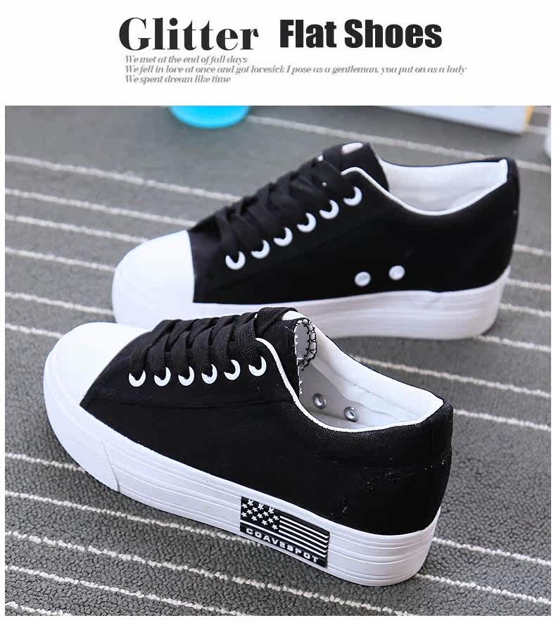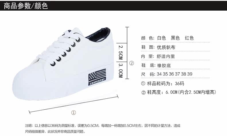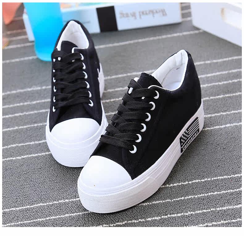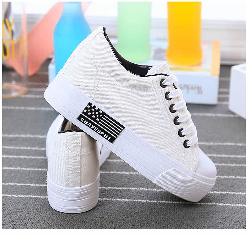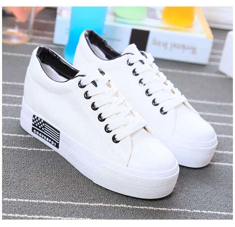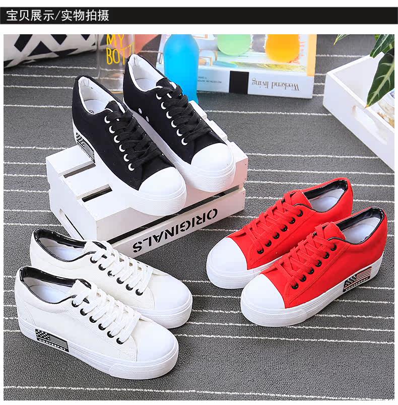 新款韩版帆布鞋女厚底小白鞋 系带 学生百搭板鞋内增高休闲鞋