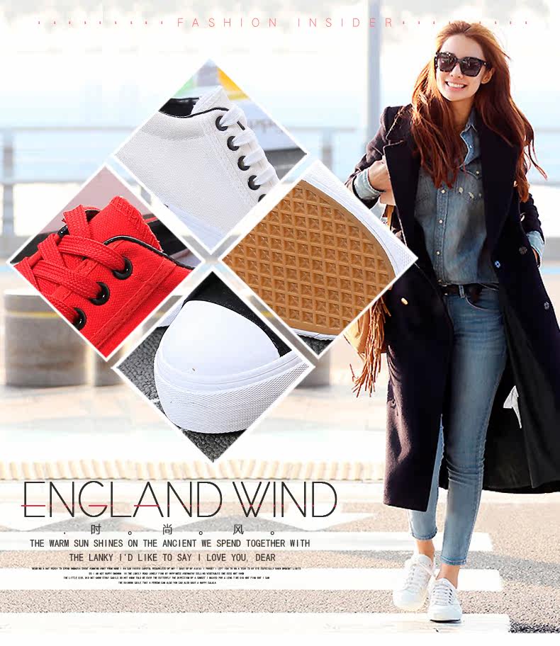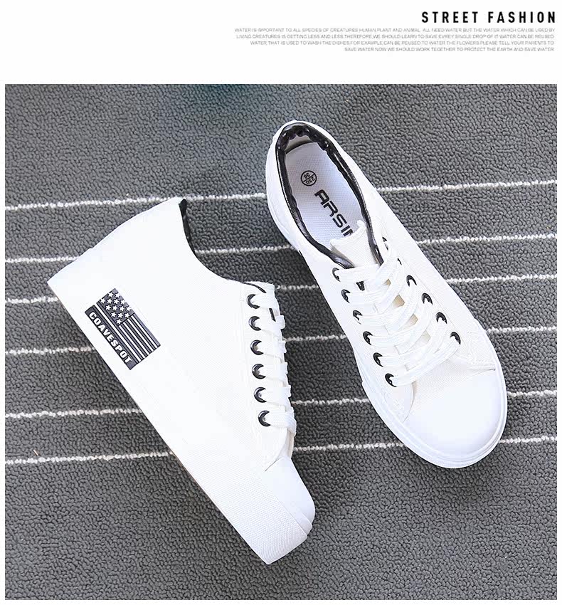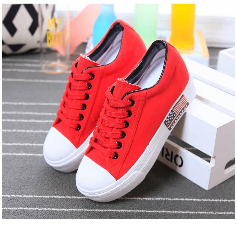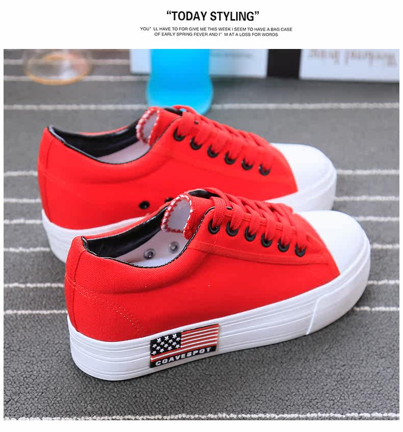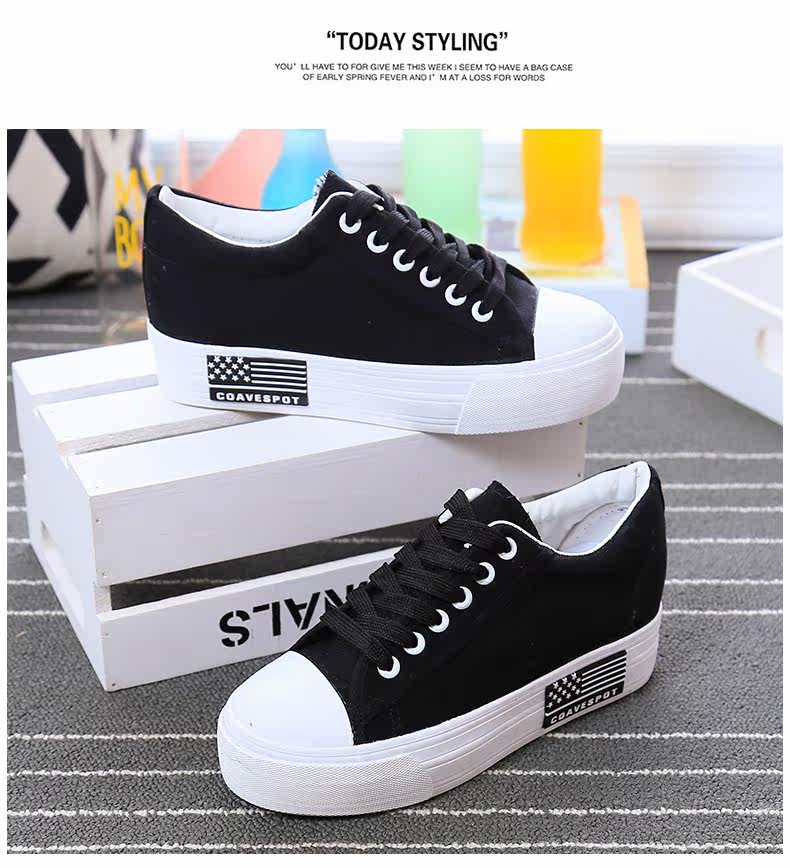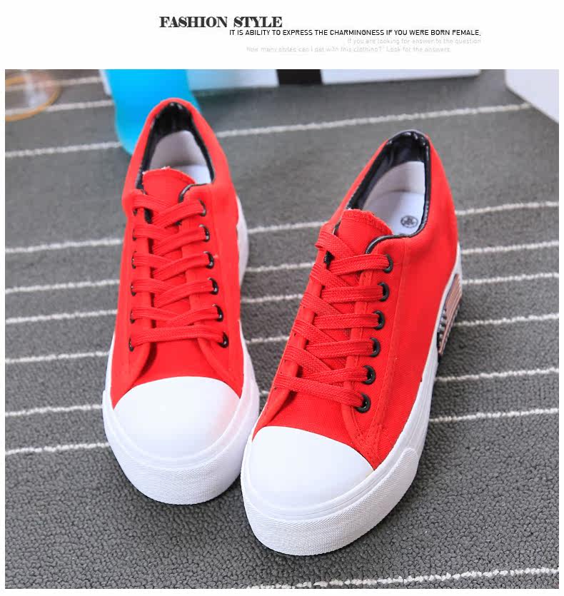 新款韩版帆布鞋女厚底小白鞋 系带 学生百搭板鞋内增高休闲鞋