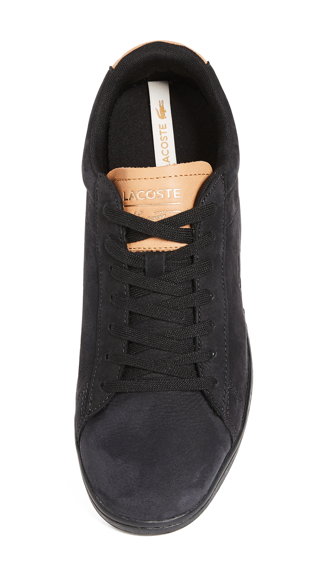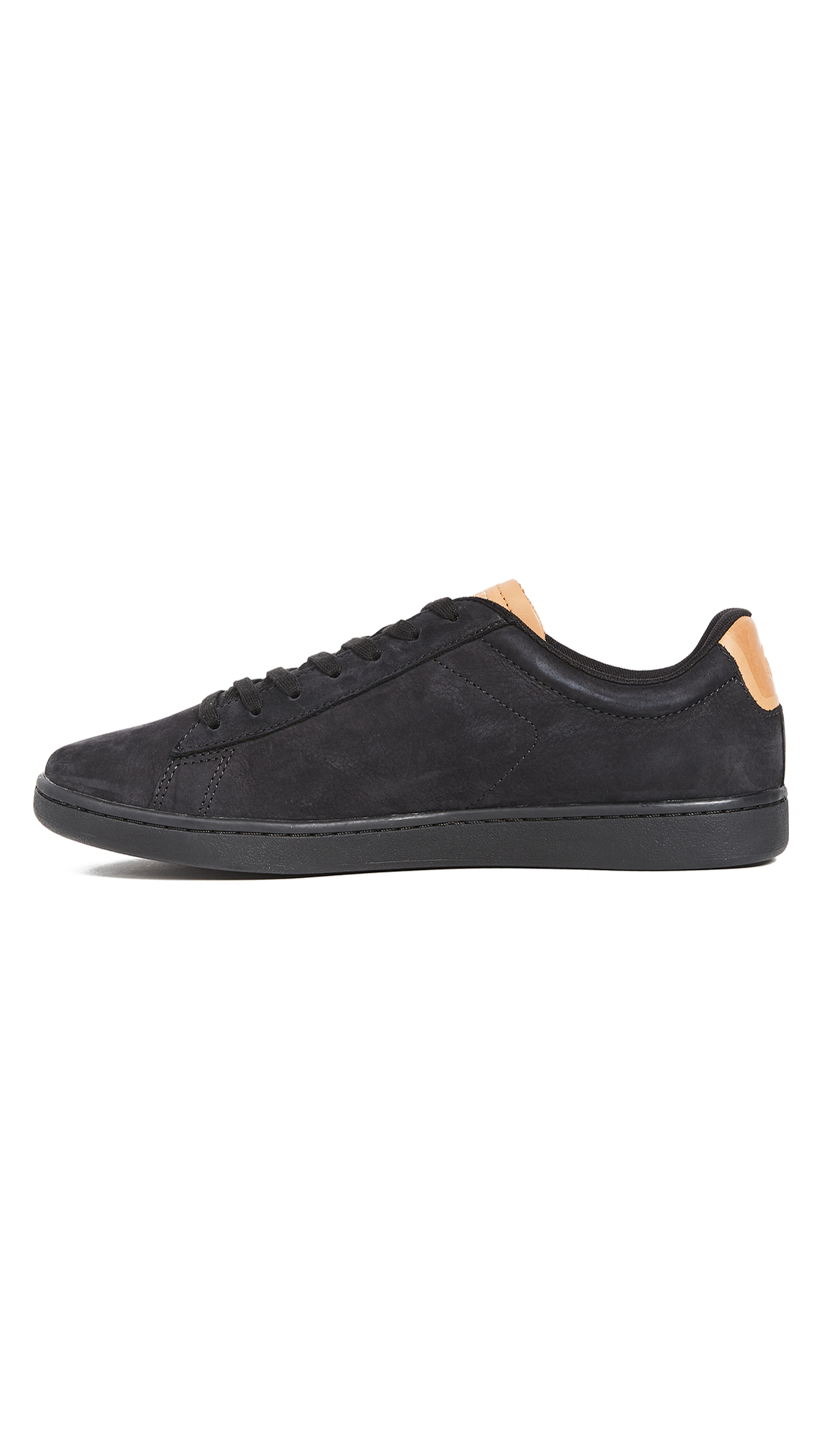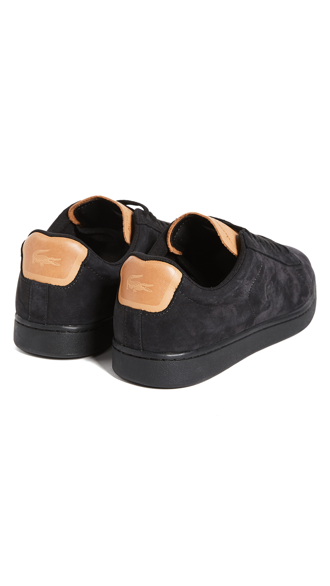 Low-top Lacoste sneakers crafted in rich nubuck with contrast leather at the padded tongue and heel. Tonal laces. Cushioned insole and rubber grip soles.