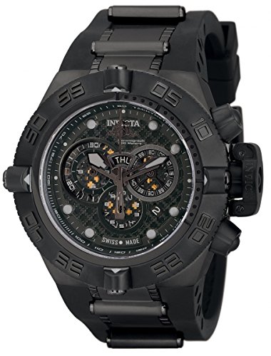 -. Feature : Sporty and durable yet with high-end technology, this Invicta Subaqua timepiece is perfect for negotiating any adventure--at sea or on land. / Swiss Quartz movement with analog display / Protective Flame Fusion crystal dial window / Features chronograph sub-dials, unidirectional outer bezel, tachymeter scale on inner bezel, screw-down pushers and crown, black ion-plated stainless steel case, and luminous hands / Water-resistant to 500 m (1,640 feet)
