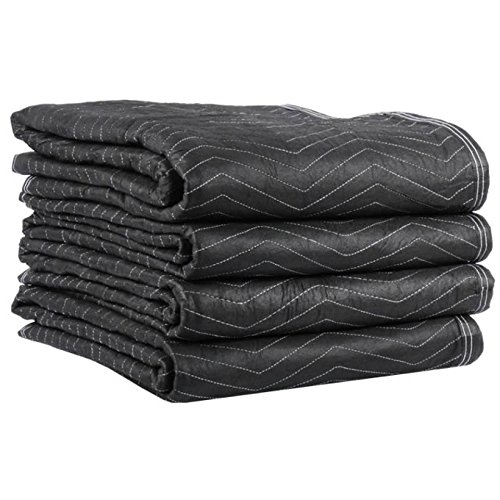 -. Feature : Professional moving blankets (4-Pack) / Weight: 18.33 Lbs. Size: 72" x 80" Color: Blue/Dark Blue / Quantity: 4 Moving Blankets / Weight: 18.33 Lbs. - Fabric: Non-Woven - Binding: Polyester / Pattern: Zig Zag - Stitching: Double Lock - Batting cotton / Durable, quality construction for ultimate furniture protection when moving