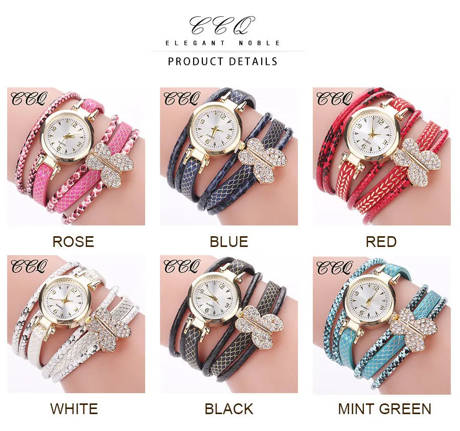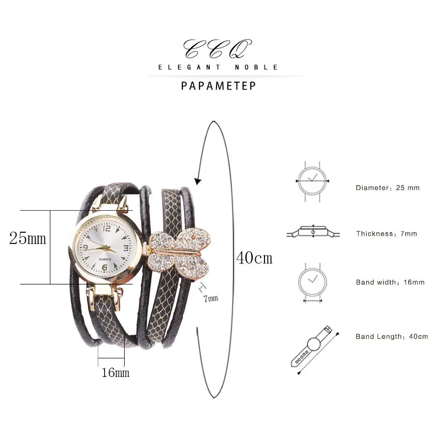 | [해외] CCQ 여성 나비 시계 캐주얼 패션 골드 드레스 팔찌 시계 여성 손목 시계 럭셔리 시계 석영 시계 드롭 배송 |