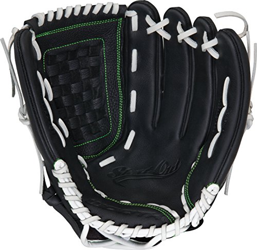 -. Feature : Full-grain leather shell with game-ready feel for durability and comfort / SilencerATM sting reduction palm pad protects your hand from ball impact / Custom-fitting VelcroA straps create a secure fit for any hand size / Narrow hand spread gives players better glove control / Patterns developed specifically for fastpitch players