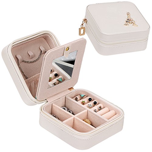 -. Feature : PU leather + Flocked cloth / Portable and light weight,easy to carry / Can hold earrings,rings,necklaces,brace lace and other small jewelry / Zipper design prevent jewelry falling out of the box / Great gift for girl friends or families on Christmas,Thanksgiving,Valentine's Day