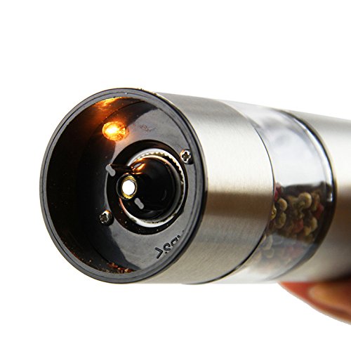 DURABLE, GORGEOUS AND ULTRA-FUNCTIONAL CONSTRUCTION: Boasting of a unique contemporary design, durable brushed-finish stainless steel construction, carbon-steel grinder for pepper, and rust-proof non-reactive ceramic grinder for salt, the DualKitchenWare Electric Salt and Pepper Grinders allow for easy grinding of salt and pepper in a single twist, give longer-life performance, and do not alter the flavors of the grounded spices.