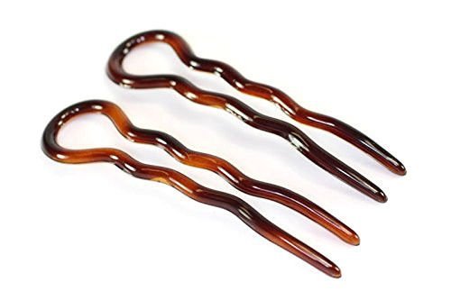 Parcelona French Sleek Tortoise Shell 9 Cms Large Wavy Crink U Shaped Chignon Hair Pin Pins Stick(2 in Pack)