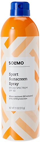 This Solimo Sport Sunscreen Spray is a broad spectrum SPF 30 sunblock that comes in a continuous spray bottle. Our sport sunscreen spray provides UVA/UVB protection and is water resistant up to 80 minutes.Feature