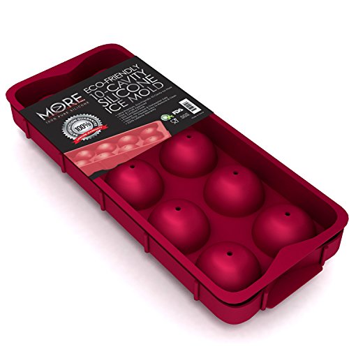 Eco-Friendly Silicone Ice cube trays,10 Whiskey Ice Balls - Premium Silicone Ice Ball Mold - Silicone Ice Sphere Mold Comes w/ FREE Placement Tray - Set of 1, Burgundy Wine More Cuisine Essentials