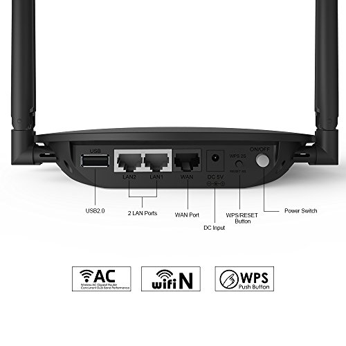WAVLINK AC1200 Wireless Wi-Fi Router with 4 External High Gain Antennas and 1 USB2.0 Port Supports Smart Wi-Fi App Enabled to Control Your Network from Anywhere