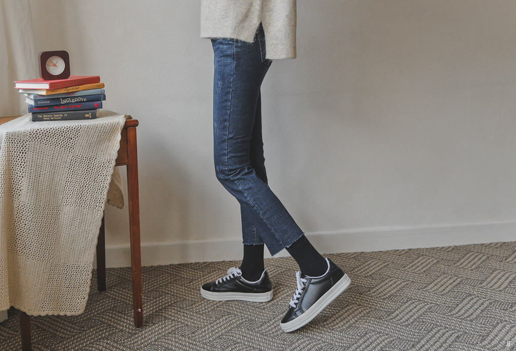빈티지한 무드가 느껴지는 밑단의 컷팅 디테일:)