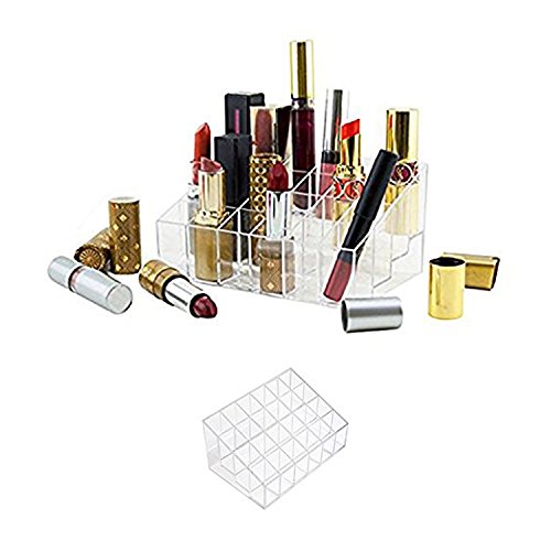 Adorox 1pc of 24 Stand Transparent Acrylic Trapezoid Makeup Cosmetic Lipstick Lip Gloss Display Stand Organizer Office Supplies (Clear (1 Piece))