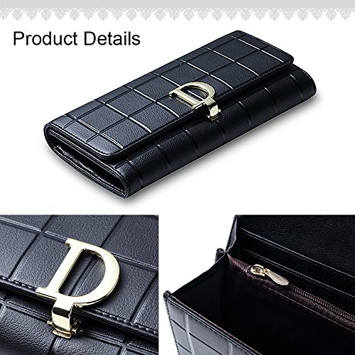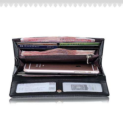 -. Feature : High Quality: Genuine Leather. Made of high quality soft superior cow leather with coating finish, excellent hardware, traditional and refined craft, classic pattern and abundant room / Structure: 2 Main cash and phone compartments, 8 card slots, 2 change or bills holder, 2 transparent window for credit card/photo,1 zipper inner pocket / Compact Design: Snap closure. Multi slots pockets are designed for you to keep your things organized well and easy to use. Can be used for cash, change, coins, cards, phone holder / You Are The Brightest Star: This wallet shows luxury exterior design, multifunction pockets inner. The best combination of beauty and utility. You must be the most eye-catching one with this wallet on the street or at the party / Your Best Choice: The compact and fashion styles of this wallet make you outstanding and unique from others. Great buy for yourself or as a gift for women/ladies on Birthday, Anniversary, Mother's day, Thanksgiving, Christmas, and all other holidays