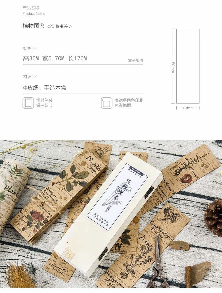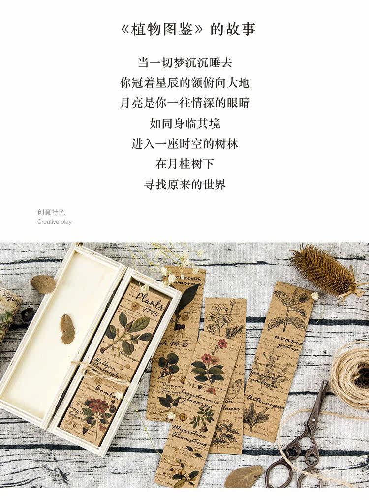 木盒典藏版复古书签 花草集时尚装饰书签 送礼祝福卡片卡纸