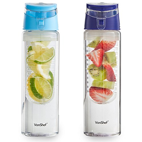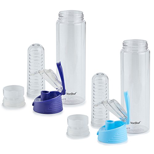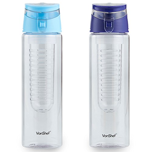VonShef 2 Pack 24 Ounce Fruit Infuser Water Infusing Bottles