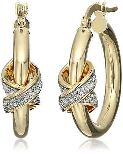 14k Italian Yellow Gold Glitter Hoop Earrings