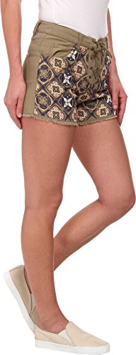 Fitted high waist shorts. Multicolored embroidery at front leg panels. Belt loop waist. Lace-up fly with button closure. Five-pocket construction. Frayed hems. Logo hit at the back waist. 100% cotton. Machine wash cold, tumble dry low. Made in the U.S.A. and Imported.